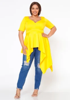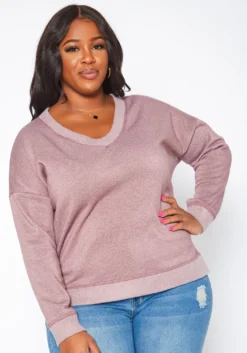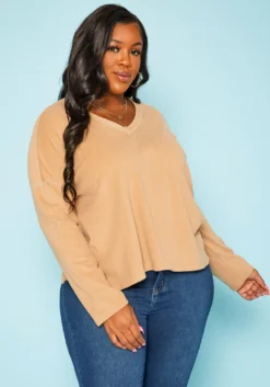 Pleione Wrap Front Long Sleeve Plus Size Women Clothing Blouse