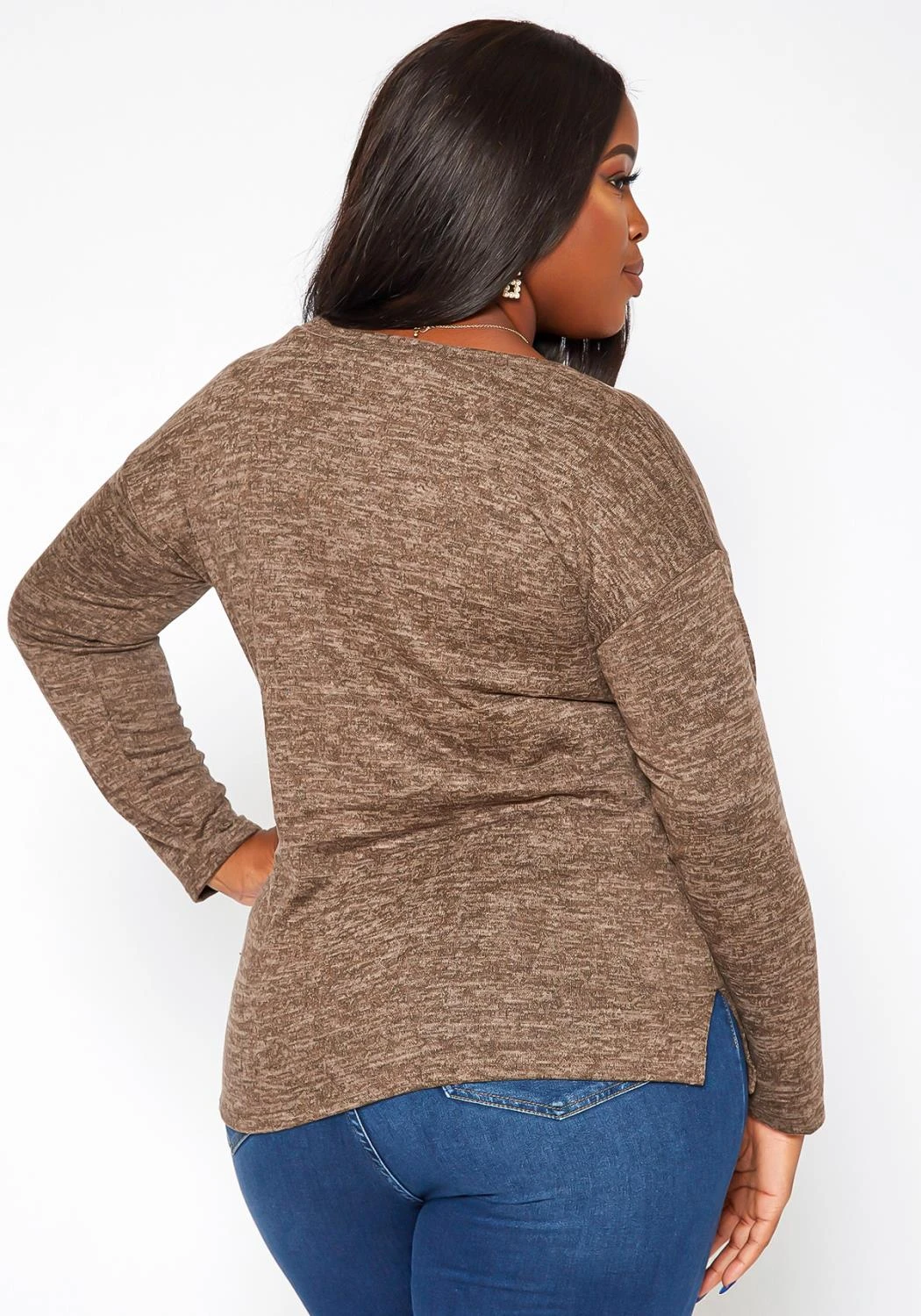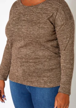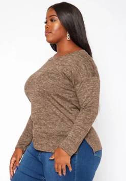 Plus size women’s essential long sleeve top in casual crew neck style, slim fit and side slit hem design.