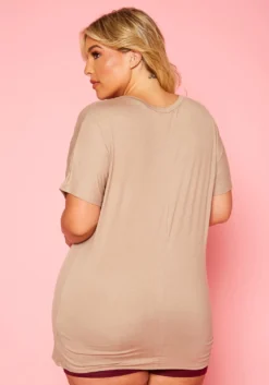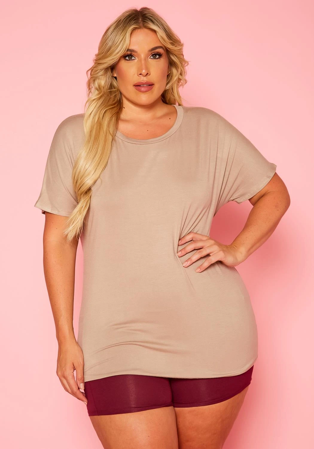 Casual plus size women’s t-shirt , round-neck style and short sleeves.