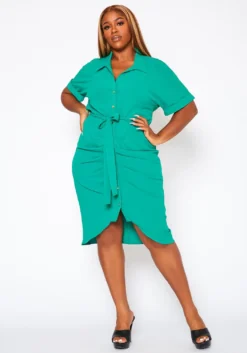 Plus size women’s dress in maxi style, featuring round neck hem, cami sleeves & back tie up closure with ruched detail.